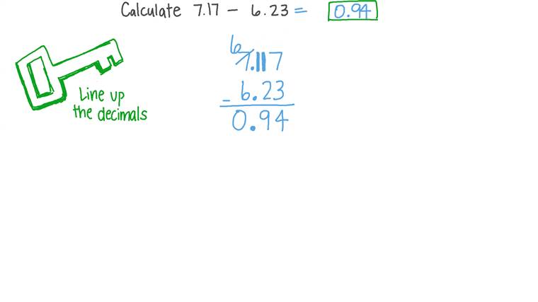 Learn how to Subtract Decimals with Mr. Some more examples subtracting decimals so lets say we want to figure out what 2 minus 12 is pause this video and see if you can calculate this so theres multiple ways to tackle this one way is you could say look this is the same thing as 2 minus 1 2 minus 1 minus 2 10 this is 2 minus 1 and 2 tenths so you were subtracting 1 and were subtracting 2 tenths now 2 minus 1 is pretty. Whenever you do a subtracting decimals problem the most important thing and this is true when youre adding decimals as well is you have to line up the decimals.